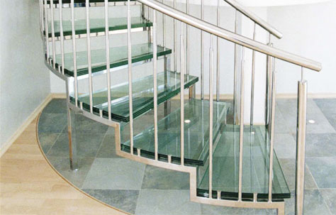 Сегодня, люди все чаще начинают использовать стеклянные лестницы взамен деревянных или лестниц из металла. И это неудивительно, ведь лестницы со стеклянными элементами являются оригинальным элементом современного интерьера. Так же такие лестницы обладают рядом преимуществ: они не уступают стандартным лестницам в функциональном плане,с другой стороны, за счет легкости и эффектного внешнего вида они отлично впишутся в любой интерьер. Следует отметить, что лестницы не изготовляются из стекла целиком. Стеклянными обычно бывают ступени и ограждения. Каркас делается из крашеной или нержавеющей стали.